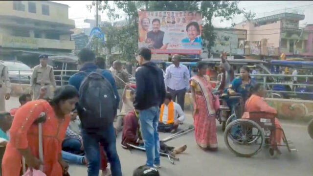 दिव्यांग 6 सूत्रीय मांगों को लेकर प्रदर्शन कर रहे हैं. इनमें से प्रमुख मांग है कि फर्जी सर्टिफिकेट के सहारे नौकरी कर रहे लोगों का राज्य मेडिकल बोर्ड से भौतिक परीक्षण कराकर बर्खास्त किया जाए. दिव्यांगजनों को प्रतिमाह 5000 रुपए पेंशन दिया जाए. बीपीएल की बाध्यता को ख़त्म किया जाए.