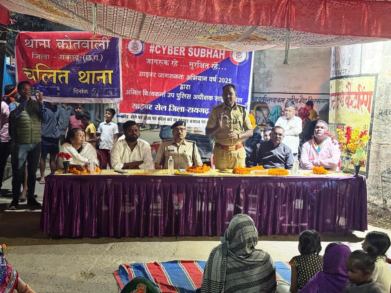 रायगढ़ : पुलिस अधीक्षक दिव्यांग कुमार पटेल के कुशल मार्गदर्शन में जिलेभर में साइबर अपराधों के प्रति लोगों को जागरूक करने हेतु विशेष अभियान लगातार जारी है। इसी कड़ी में आज दिनांक 11 नवंबर 2025 को थाना कोतवाली क्षेत्र अंतर्गत वार्ड क्रमांक 07 में साइबर जागरूकता कार्यक्रम आयोजित किया गया। कार्यक्रम का उद्देश्य आम नागरिकों को बढ़ते ऑनलाइन अपराधों से सावधान करना और उनसे बचाव के तरीके बताना रहा।