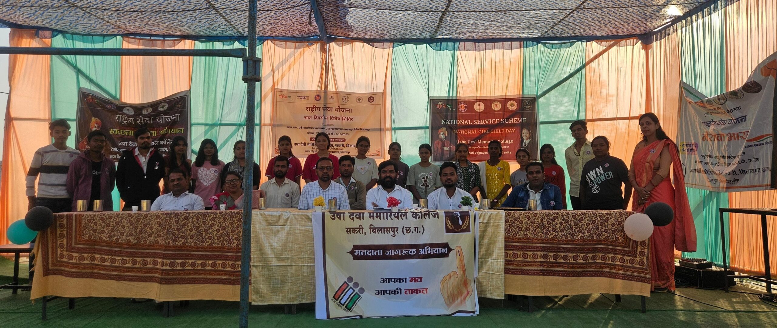 नशामुक्ति अभियान से संबंधित नुक्कड़ नाटक प्रस्तुत करते हुए ग्रामवासी को नशा मुक्त समाज बनाने के लिए प्रेरित किया। उद्बोधन की कड़ी में जगत राम साहू ने स्वयंसेविकाओं को करियर एवं व्यक्तित्व विकास से संबंधित जानकारी दी। सभापति के द्वारा एसएसएस की गतिविधियों की जानकारी दी गई। एवं अनुशासन एवं एकाग्रता से कार्य कर अपने व्यक्तित्व विकास करने के लिए प्रेरित किया। महामंत्री मोहन पाटले ने कहा कि विकासशील भारत को प्रगति के पथ पर अग्रसर करते हुए विकसित भारत अभियान चलाया जाना है इसी उद्देश्य से कैंप आयोजित किया गया है।प्राचार्य डॉ शुल्काक्षण ने कहा कि समाज को नशामुक्त करते हुए भारत को विकसित बनाने के लिए विकसित भारत अभियान चलाया जा रहा है। इसके डॉ रीना ताम्रकार, कार्यालय प्रमुख और स्वयंसेविकाएं उपस्थित थी।