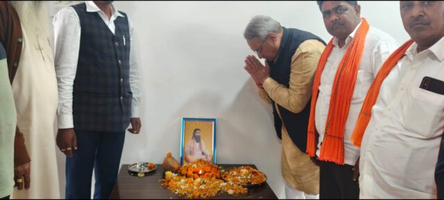 राधेश्याम सोनवानी गरियाबंद:- भारतीय जनता पार्टी जिला कार्यालय में आज अनुसूचित जाति मोर्चा के तत्वावधान में महान समाज सुधारक और आध्यात्मिक संत शिरोमणि रविदास जी की जयंती हर्षोल्लास के साथ मनाई गई। कार्यक्रम में भाजपा पदाधिकारियों और कार्यकर्ताओं ने संत रविदास जी के चित्र पर माल्यार्पण कर उन्हें नमन किया और उनके बताए मार्ग पर चलने का संकल्प लिया।