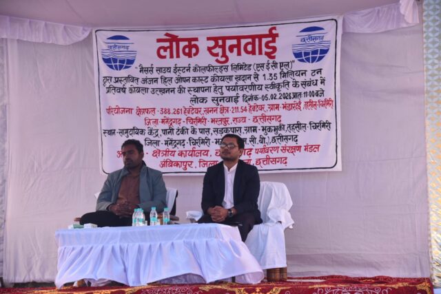 सुरेश मिनोचा एमसीबी/खड़गवां/चिरमिरी : अंजन माइंस प्राइवेट लिमिटेड द्वारा दक्षिण-पूर्वी चिरमिरी कोलफील्ड क्षेत्र में प्रस्तावित अंजन हिल कोयला खदान परियोजना के लिए जनसुनवाई गुरुवार को सफलतापूर्वक संपन्न हुई। यह परियोजना कोल इंडिया लिमिटेड की सहायक कंपनी साउथ ईस्टर्न कोलफील्ड्स लिमिटेड (एसईसीएल) के चिरमिरी क्षेत्र अंतर्गत लगभग 388.261 हेक्टेयर क्षेत्र में प्रस्तावित है। जनसुनवाई का आयोजन ग्राम भुकभुकी, जनपद पंचायत खंडगवां में किया गया, जिसमें प्रशासन और संबंधित विभागों के वरिष्ठ अधिकारी उपस्थित रहे। कार्यक्रम में अपर कलेक्टर अनिल सिदार, पर्यावरण जलवायु संरक्षण अधिकारी शैलेश पिसदा, अनुविभागीय अधिकारी बृजेन्द्र सारथी, सीएसपी दीपिका मिंज, एसईसीएल के महाप्रबंधक अशोक कुमार तथा सब एरिया मैनेजर मनीष सिंह सहित अन्य अधिकारी मौजूद थे।