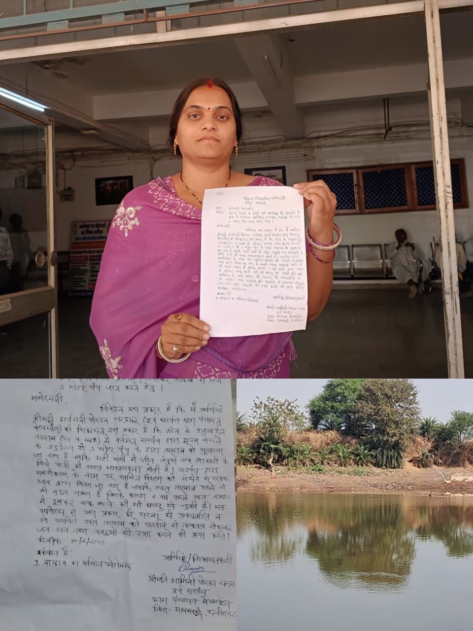 महासमुंद : मंगलवार को ग्राम पंचायत बेलसोंडा की पूर्व सरपंच श्रीमती भामिनी पोखन चंद्राकर ने कलेक्टर जनचौपाल में गांव में हो रहे मुरम खनन की तैयारी पर रोक लगाने व पानी की बर्बादी पर तत्काल प्रतिबंध लगाने की शिकायत की है। श्रीमती चंद्राकर ने द्वारा सौंपे शिकायत पत्र बताया है कि गांव के उतलइन तालाब खसरा नंबर 1668 मे तालाब गहरीकरण के नाम पर 3-3 मोटर पंप लगाकर भरे तालाब क़ो सुखाया जा रहा है, ताकि मुरम खनन हेतु किया जा सके। श्रीमती चंद्राकर ने बताया कि गर्मी के दिनों मे इस प्रकार भरे तालाब क़ो बिना उचित उद्देश्य के सुखाना अपराध है। जबकि इस बार नहर मरम्मत के कारण नहर से पानी छोड़ने की कोई गुंजाईश भी नही है तथा जीव जंतुओं एवं पशुओं के लिए गर्मी के दिनों मे पानी का भीषण संकट उत्पन्न हो जाएगा। श्रीमती चंद्राकर ने बताया कि यदि तालाब उथला होता तो उसमे से पानी बाहर फेकने की आवश्यकता ही नही पड़ती ज़बकि गहराई के कारण इसी तालाब मे छ: वर्ष पहले डूबकर एक बालक की मृत्यु भी चुकी है फिर भी मुरम बेचने के लिए भरे गहरे तालाब क़ो औऱ गहरा करना सरपंच की जनकल्याण के प्रति घोर उदासीनता तथा लापरवाही क़ो उजागर करता है। श्रीमती चंद्राकर ने सरपंच की इस घोर लापरवाही के लिए उनके विरुद्ध सख्त कार्यवाई की मांग की है।
