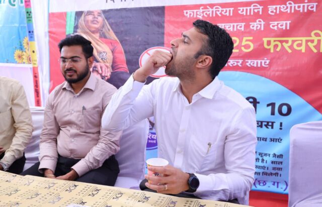 रायगढ़ : राष्ट्रीय फाइलेरिया उन्मूलन कार्यक्रम के तहत कलेक्टर श्री मयंक चतुर्वेदी ने शासकीय हाईस्कूल रामभांठा में आयोजित जिला स्तरीय कार्यक्रम में स्वयं फाइलेरिया रोधी दवा का सेवन कर अभियान का शुभारंभ किया और नागरिकों से सहभागिता की अपील की। मौके पर जिला पंचायत के मुख्य कार्यपालन अधिकारी श्री अभिजीत बबन पठारे ने भी दवा का सेवन किया।कलेक्टर श्री चतुर्वेदी ने कहा कि फाइलेरिया से बचाव के उपाय अत्यंत सरल और प्रभावी हैं। उन्होंने कहा कि स्वास्थ्य विभाग द्वारा दी जा रही मानक खुराक का नियमित सेवन करने से इस बीमारी से आजीवन बचाव संभव है। उन्होंने आमजन को आश्वस्त किया कि दवाइयां पूरी तरह सुरक्षित हैं, अतः किसी भी प्रकार के संकोच या अफवाह में न आएं। उन्होंने बताया कि अभियान के प्रथम चरण में शासकीय संस्थानों और शैक्षणिक परिसरों में दवा सेवन कराया जाएगा, जिसके बाद स्वास्थ्यकर्मी घर-घर जाकर अपनी निगरानी में दवा खिलाएंगे।