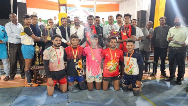 बिलासपुर (कैलाश वस्त्रकार) : ग्राम पंचायत परसदा में शनिवार को कबड्डी प्रतियोगिता का फाइनल मैच चिंगराजपारा B बिलासपुर की टीम ने जीता। आयोजन समिति के सदस्य सोमनाथ यादव ने बताया कि परसदा ग्राम में 2 दो दिवसीय कबड्डी प्रतियोगिता का आयोजन किया गया,जिसमें शनिवार को फाइनल मुकाबला चिंगराजपारा A व चिंगराजपारा B की टीम के बीच खेला गया। समापन पर मुख्य अतिथि बीजेपी बिलासपुर जिला उपाध्यक्ष संतोष कौशिक गुरुजी (जन नेता) , अध्यक्षता सभापति अरुण सिंह चौहान एवं विशिष्ट अतिथि के रूप में जनपद अध्यक्ष तखतपुर प्रतिनिधि संतोष वस्त्रकार एवं जनपद उपाध्यक्ष राकेश तिवारी, जनपद सदस्य ऋषभ मनहरण कौशिक, तोडें जी,,सरपंच संघ अध्यक्ष श्याम सुंदर कश्यप , ग्राम के सरपंच जगत राम साहू भरनी सरपंच किरण वस्त्रकार, नेवरा सरपंच मुँजन साहू , राज कमल साहू ,अक्षय चौहान ,पूर्व सेवानिवृत्त टीआई धन्नू यादव, डी.आर कौशिक की उपस्थिति में सम्पन्न हुआ।