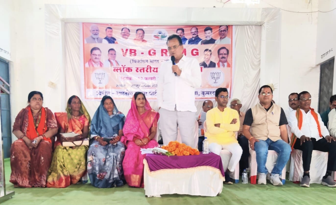 छुरिया : छुरिया विकासखंड मुख्यालय में भारतीय जनता पार्टी खुज्जी विधानसभा स्तरीय “वी बी जीरामजी” कार्यशाला का आयोजन किया गया। कार्यक्रम में मुख्य वक्ता के रूप में पूर्व जिला पंचायत अध्यक्ष दिनेश गांधी, सहवक्ता जिला भाजपा महामंत्री डिकेश साहू, जिला पंचायत अध्यक्ष श्रीमती किरण रविंद्र वैष्णव, जनपद पंचायत अध्यक्ष संजय कुमार सिन्हा एवं नगर पंचायत अध्यक्ष अजय पटेल विशेष रूप से उपस्थित रहे।