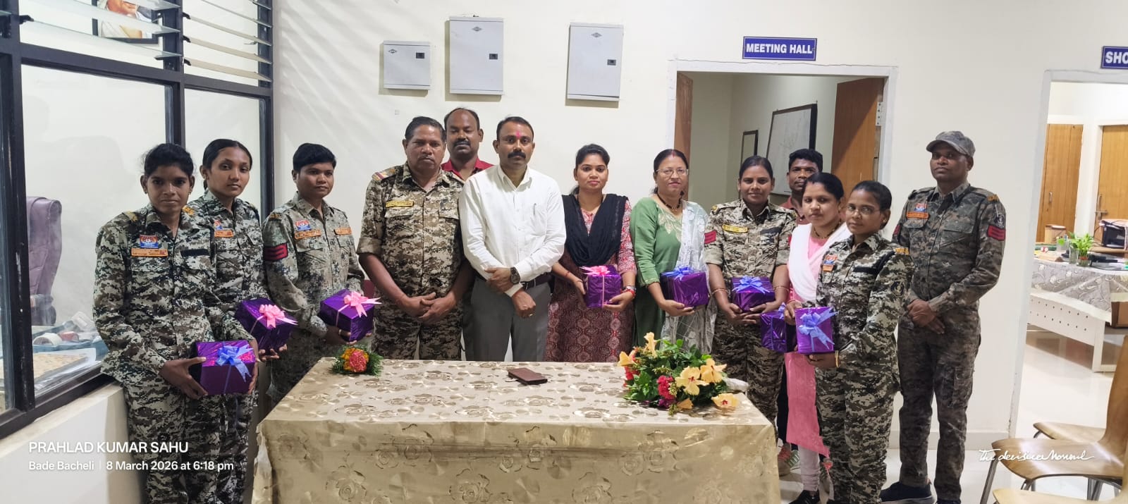 एस एच अज़हर अमन पथ दंतेवाड़ा बचेली (छत्तीसगढ़): अंतरराष्ट्रीय महिला दिवस के अवसर पर थाना बचेली में एक सादगीपूर्ण लेकिन हृदयस्पर्शी कार्यक्रम का आयोजन किया गया। थाना प्रभारी निरीक्षक प्रहलाद कुमार साहू के नेतृत्व में थाना स्टाफ ने थाने में पदस्थ महिला अधिकारियों एवं कर्मचारियों का विशेष सम्मान किया।कार्यक्रम में महिला पुलिसकर्मियों को बुके, उपहार भेंट किए गए, साथ ही केक काटकर उन्हें शुभकामनाएं दी गईं। जलपान की व्यवस्था के साथ सभी ने मिलकर उत्साहपूर्ण माहौल में महिला दिवस मनाया। इस दौरान महिला पुलिसकर्मियों के कार्यों, समर्पण और निष्ठा की खुलकर सराहना की गई।