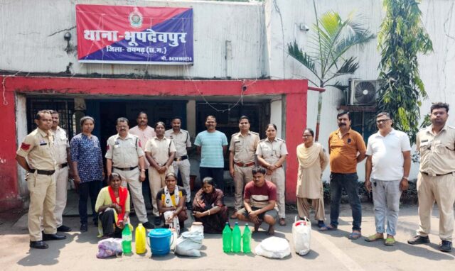पुलिस उप महानिरीक्षक एवं वरिष्ठ पुलिस अधीक्षक श्री शशि मोहन सिंह तथा कलेक्टर श्री मयंक चतुर्वेदी के निर्देश पर यह संयुक्त कार्रवाई की गई। पुलिस थाना भूपदेवपुर और आबकारी विभाग की टीम ने दोनों गांवों में दबिश देकर अवैध रूप से बनाई और संग्रहित की जा रही महुआ शराब को जब्त किया। संयुक्त कार्रवाई में कुल 92.500 लीटर महुआ शराब और लगभग 200 किलोग्राम महुआ लाहन बरामद किया गया।सहायक आयुक्त आबकारी ने जानकारी देते हुए बताया कि भूपदेवपुर पुलिस ने तीन अलग-अलग मामलों में आरोपियों के खिलाफ आबकारी अधिनियम की धारा 34(2) के तहत प्रकरण दर्ज किए हैं। पुलिस ने ग्राम किरीतमाल निवासी श्रवण कुमार लहरे (43 वर्ष) से 7 लीटर महुआ शराब जब्त कर प्रकरण क्रमांक 42/2026 दर्ज किया है। इसी तरह मालती बाई डनसेना, निवासी किरीतमाल से भी 7 लीटर महुआ शराब बरामद कर प्रकरण क्रमांक 43/2026 कायम किया गया। वहीं ग्राम बिलासपुर निवासी संतोषी चौहान (38 वर्ष) के पास से भी 7 लीटर महुआ शराब जब्त कर प्रकरण क्रमांक 44/2026 के तहत मामला दर्ज किया गया है।