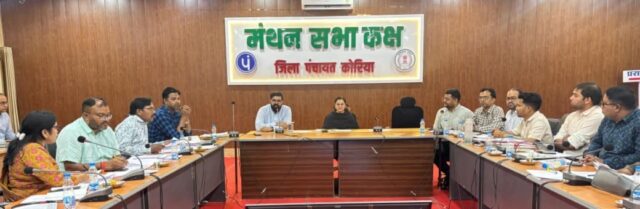सुरेश मिनोचा कोरिया : जिला पंचायत के मंथन कक्ष में पंचायत एवं ग्रामीण विकास विभाग की प्रमुख योजनाओं के प्रगति की समीक्षा बैठक आयोजित की गई। कलेक्टर कोरिया श्रीमती चंदन त्रिपाठी ने मनरेगा से उन्न्त होकर ग्रामीण विकास की नई योजना वीबीजीरामजी के कार्यों के चयन, प्रधानमंत्री आवास योजना की ग्राम वार प्रगति के साथ जिले में स्वच्छ भारत मिशन के तहत चल रहे कार्यों की समीक्षा करते हुए संबंधित अधिकारियों को आवश्यक दिशा-निर्देश प्रदान किए। इस दौरान जिला पंचायत कोरिया के मुख्य कार्यपालन अधिकारी डॉ आशुतोष चतुर्वेदी, कार्यपालन अभियंता ग्रामीण यांत्रिकी सेवा सहित सभी जनपद पंचायतों के मैदानी अधिकारी उपस्थित रहे।