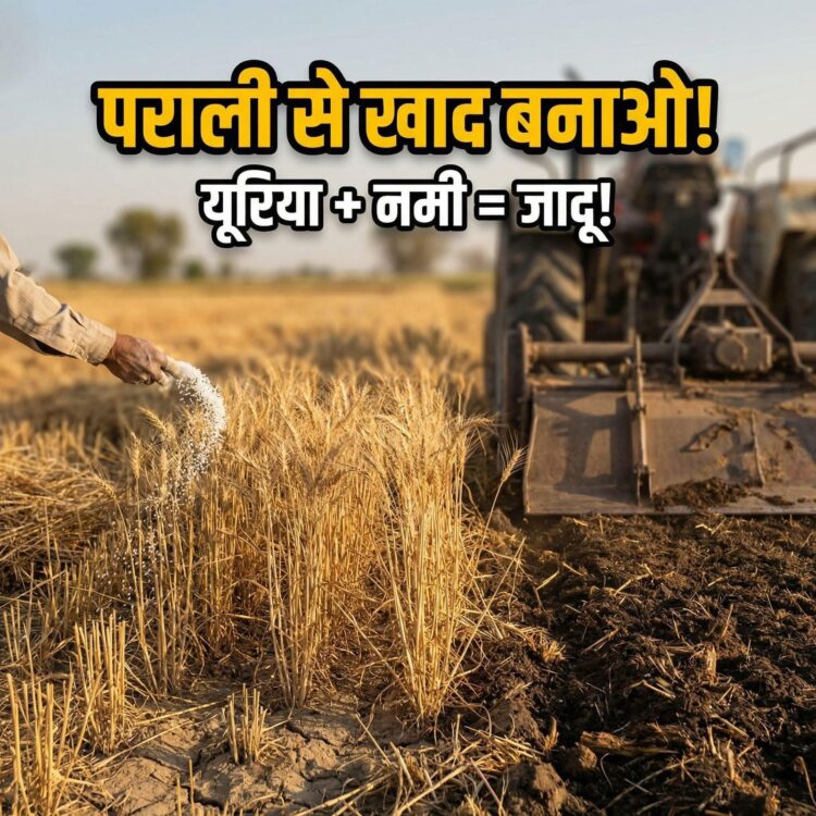 पराली के उचित प्रबंधन के लिए यह आवश्यक है कि धान ,मक्का , गेहूं की कटाई जमीन से लगभग 2 इंच ऊपर की जाए, जिससे अवशेषों का प्रबंधन आसान हो सके। कटाई के बाद खेत में हल्की नमी बनाए रखते हुए प्रति एकड़ 20–25 किलोग्राम यूरिया का छिड़काव करना चाहिए और फिर रोटावेटर या कल्टीवेटर की सहायता से पराली को मिट्टी में मिला देना चाहिए। पराली में कार्बन की मात्रा अधिक और नाइट्रोजन की मात्रा कम होती है, इसलिए यूरिया डालने से कार्बन-नाइट्रोजन (C:N) अनुपात संतुलित होता है और सूक्ष्मजीव तेजी से सक्रिय होकर अपघटन प्रक्रिया को गति देते हैं। लगभग 20 से 30 दिनों के भीतर यह पराली सड़कर जैविक खाद में परिवर्तित होने लगती है।