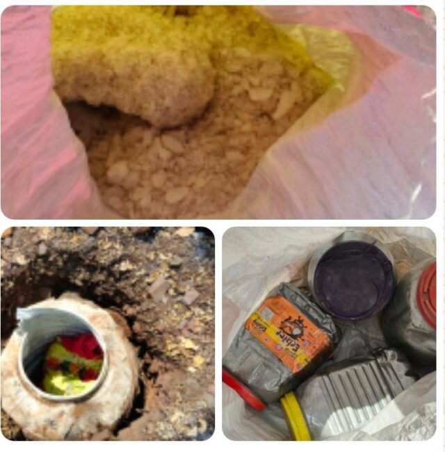 टंकी के अंदर बड़ी मात्रा में विस्फोटक सामग्री रखी गई थी, जिसमें लगभग 50 किलोग्राम गंधक, करीब 100 किलोग्राम यूरिया (दो बोरी) तथा 10 किलोग्राम गन पाउडर शामिल है। आशंका जताई जा रही है कि माओवादी इन सामग्रियों का उपयोग सुरक्षा बलों को नुकसान पहुंचाने के लिए करने की योजना बना रहे थे।सुरक्षाबलों ने तत्परता और सतर्कता दिखाते हुए सभी सुरक्षा मानकों का पालन किया और बरामद विस्फोटक सामग्री को मौके पर ही सुरक्षित तरीके से नष्ट कर दिया, जिससे संभावित बड़े हादसे को टाल दिया गया।