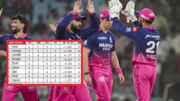 इस मैच में मिली जीत के बाद आरआर की टीम ने अंक तालिका में दूसरे स्थान पर कब्जा कर लिया है। हालांकि, पंजाब किंग्स की टीम पहले स्थान पर 11 अंक के साथ पर मौजूद है। आइए देखते हैं कौन-सी टीम प्वाइंट्स टेबल में सबसे आखिरी पायदान पर है?