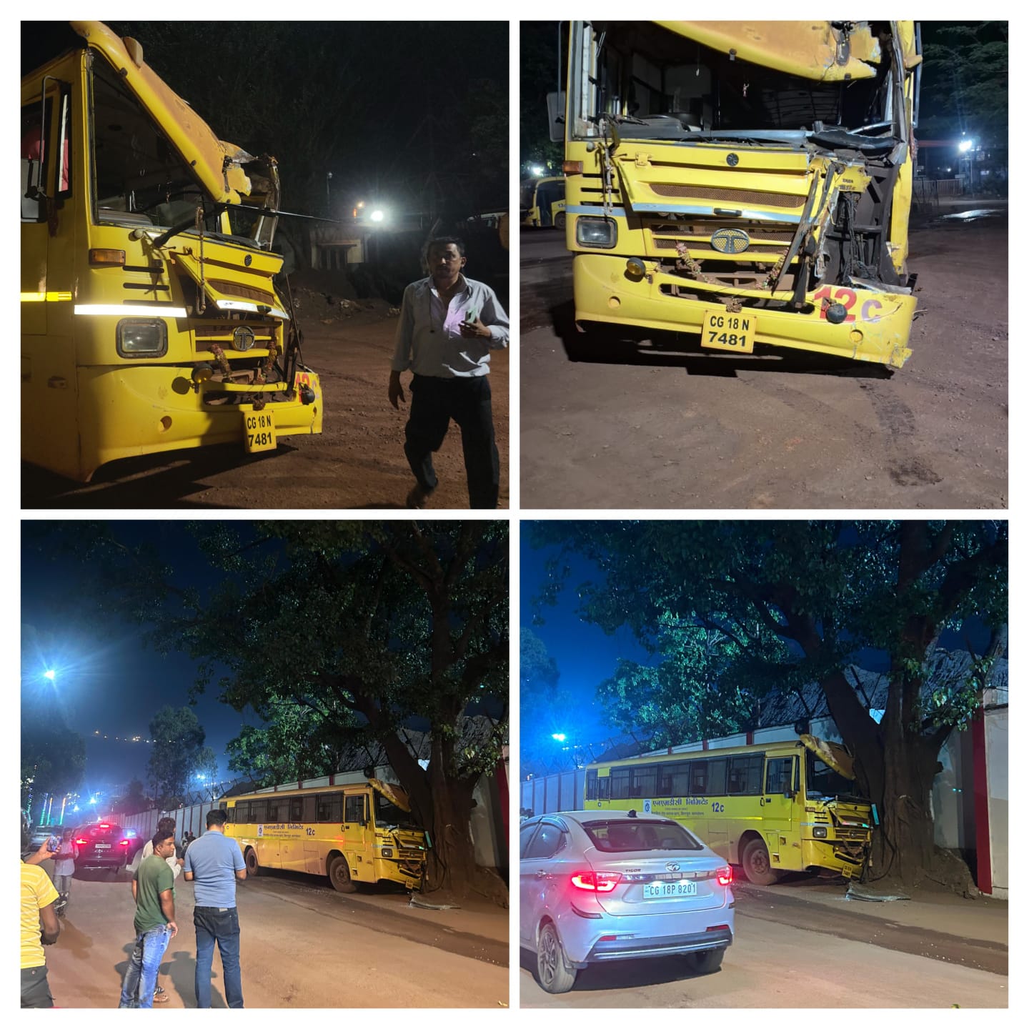 एस एच अज़हर | अमन पथ, दंतेवाड़ा किरंदुल: NMDC किरंदुल परियोजना की बस (CG 18 N 7481) सोमवार रात करीब 11 बजे इंडियन गैस गोदाम के पास विशाल पीपल के पेड़ से टकरा गई। हादसे में एक कर्मचारी के सिर में गंभीर चोट आई, जबकि दो अन्य को मामूली चोटें लगीं। सभी घायलों को NMDC परियोजना अस्पताल में भर्ती कराया गया, जहां उनकी हालत स्थिर बताई जा रही है।